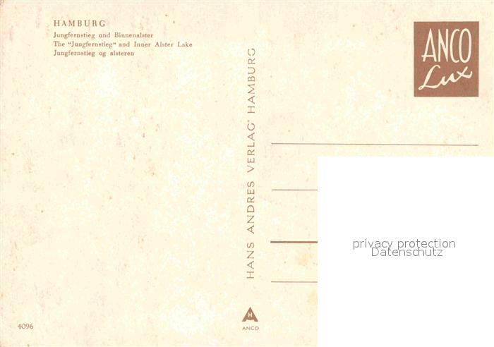 72740988 HAMBURG CITY Jungfernstieg und Binnenalster postalisch nicht gelaufen Erhaltung siehe scans [FriedD77] KatCode: 11110002000000