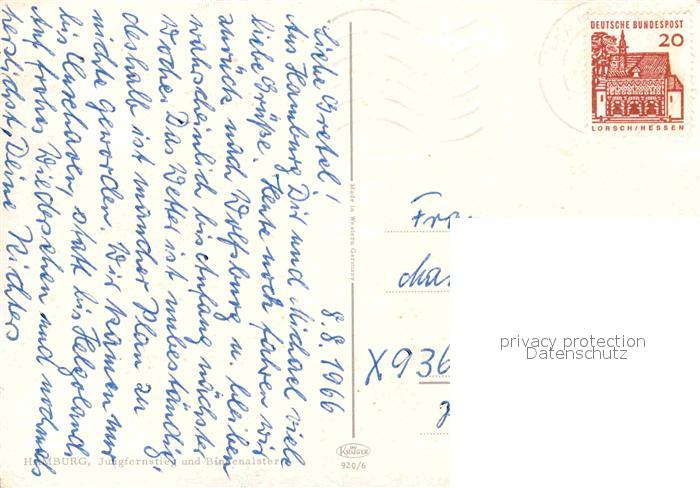 72646176 alte Postkarte HAMBURG CITY Jungfernstieg und Binnenalster postalisch gelaufen Erhaltung siehe scans [WerneD78] KatCode: 11110002000000