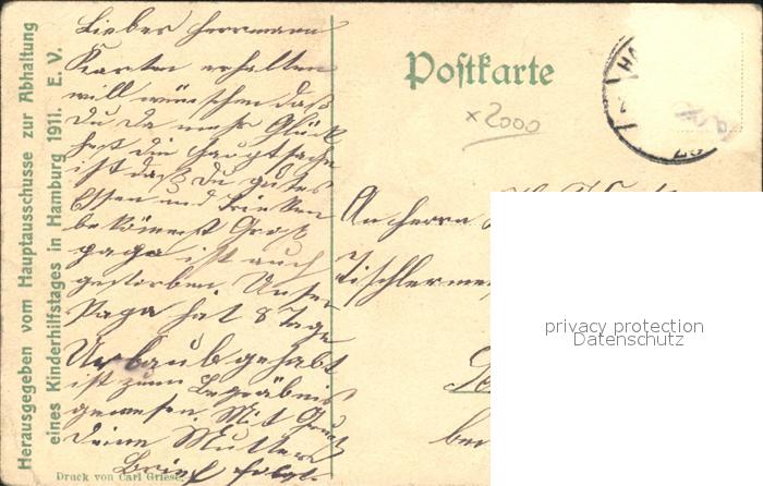 42160667 alte Postkarte HAMBURG CITY Karte zum Kinderhilfstag 1911 postalisch gelaufen Erhaltung siehe scans KatCode: 11110002000000