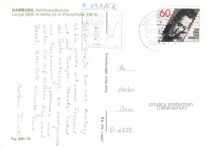 72726614 alte Postkarte HAMBURG CITY Koehlbrandbruecke Fliegeraufnahme postalisch gelaufen Erhaltung siehe scans [WerneD78] KatCode: 11110002000000