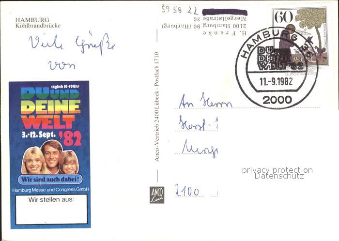 72316706 alte Postkarte HAMBURG CITY Koehlbrandbruecke Fliegeraufnahme postalisch gelaufen Erhaltung siehe scans KatCode: 11110002000000