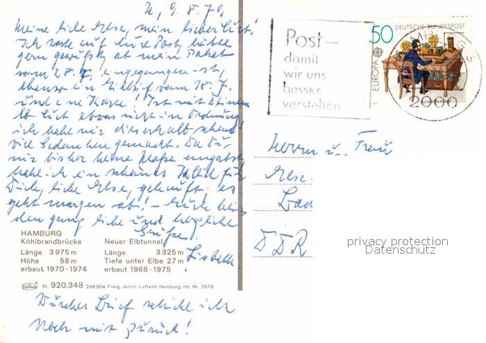 72687949 alte Postkarte HAMBURG CITY Koehlbrandbruecke Neuer Elbtunnel postalisch gelaufen Erhaltung siehe scans [NatalD47] KatCode: 11110002000000