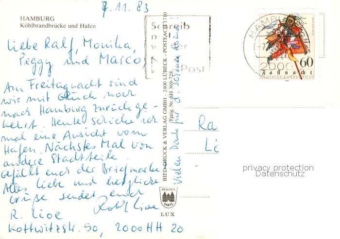 73836503 HAMBURG CITY Koehlbrandbruecke und Hafen Fliegeraufnahme postalisch gelaufen Erhaltung siehe scans [WerneD78] alte Postkarte Wern Katcode 11110002000000