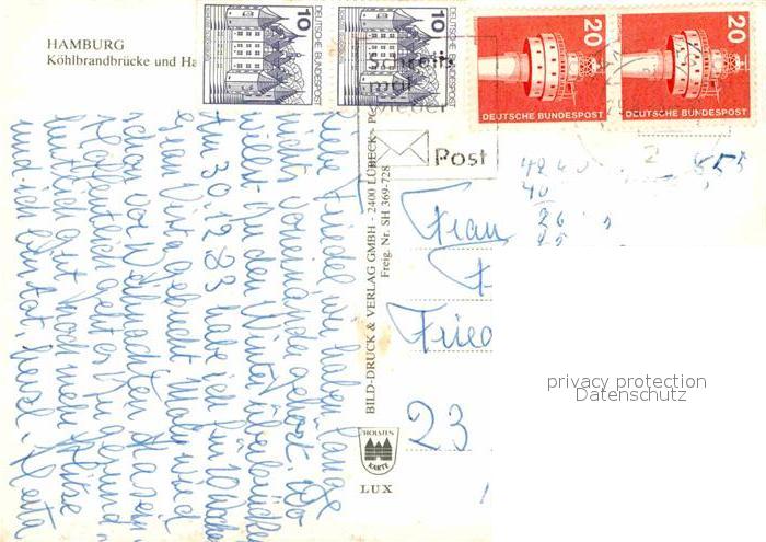 72884148 alte Postkarte HAMBURG CITY Koehlbrandbruecke und Hafen Fliegeraufnahme postalisch gelaufen Erhaltung siehe scans [WerneD78] KatCode: 11110002000000