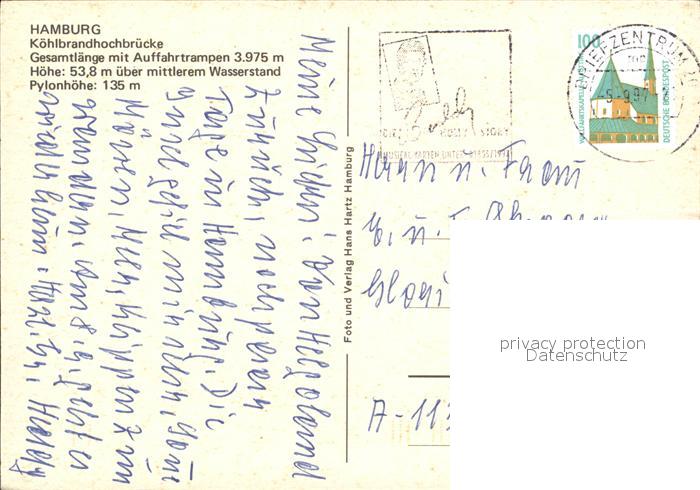 72481918 alte Postkarte HAMBURG CITY Koehlbrandhochbruecke postalisch gelaufen Erhaltung siehe scans KatCode: 11110002000000