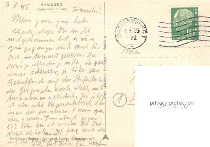 73755070 HAMBURG CITY Kontorhochhaeuser postalisch gelaufen Erhaltung siehe scans [FriedD77] alte Postkarte Frie Katcode 11110002000000