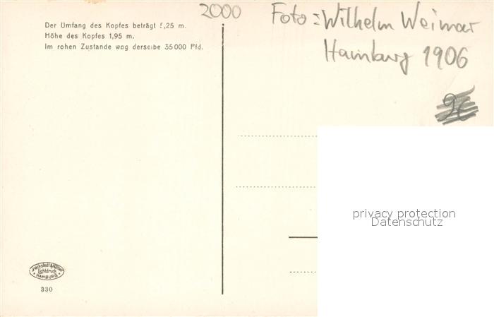 73711498 HAMBURG CITY Kopf des Bismarck-Denkmals postalisch nicht gelaufen Erhaltung siehe scans [LiesaD40] Lies Katcode 11110002000000