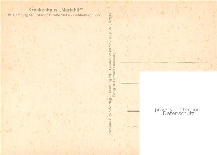 73726447 HAMBURG CITY Krankenhaus Mariahilf Fliegeraufnahme postalisch nicht gelaufen Erhaltung siehe scans [WerneD78] Wern Katcode 11110002000000