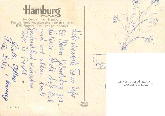 72720827 HAMBURG CITY Loews Hamburg Plaza postalisch nicht gelaufen Erhaltung siehe scans [LiesaD40] KatCode: 11110002000000
