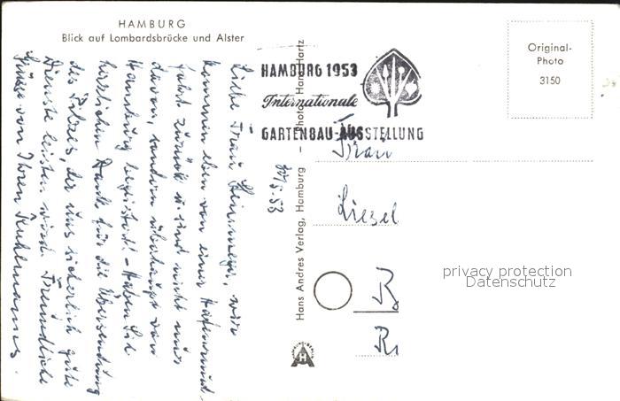 72463633 alte Postkarte HAMBURG CITY Lombardsbruecke und Alster postalisch gelaufen Erhaltung siehe scans KatCode: 11110002000000