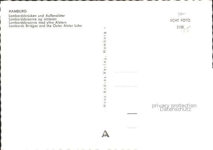 72303111 HAMBURG CITY Lombardsbruecken Aussenalster postalisch nicht gelaufen Erhaltung siehe scans KatCode: 11110002000000