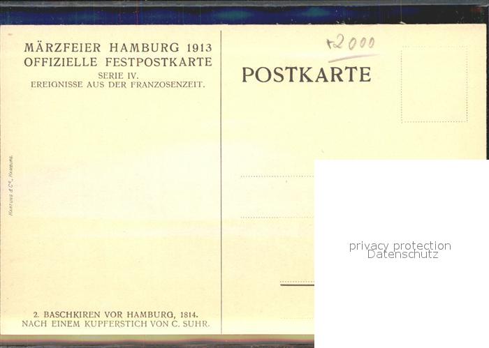 42054437 HAMBURG CITY Maerzfeier 1913 Baschkiren vor Hamburg postalisch nicht gelaufen Feldpost Erhaltung siehe scans KatCode: 11110002000000