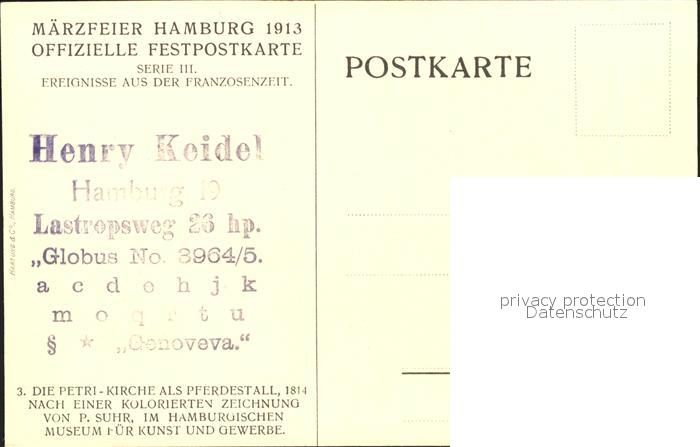 71838678 HAMBURG CITY Maerzfeier 1913 Offizielle Festpostkarte Serie III Ereignisse aus der Franzosenzeit Zeichnung P. Suhr postalisch nicht gelaufen Erhaltung siehe scans KatCode: 11110002000000