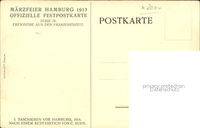 42053585 HAMBURG CITY Maerzfeier 2. Baschkiren vor Hamburg Kupferstich postalisch nicht gelaufen Feldpost Erhaltung siehe scans KatCode: 11110002000000