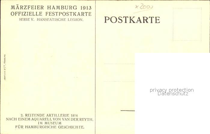 42053584 HAMBURG CITY Maerzfeier 2. Reitende Artillerie 1814 Aquarell postalisch nicht gelaufen Feldpost Erhaltung siehe scans KatCode: 11110002000000