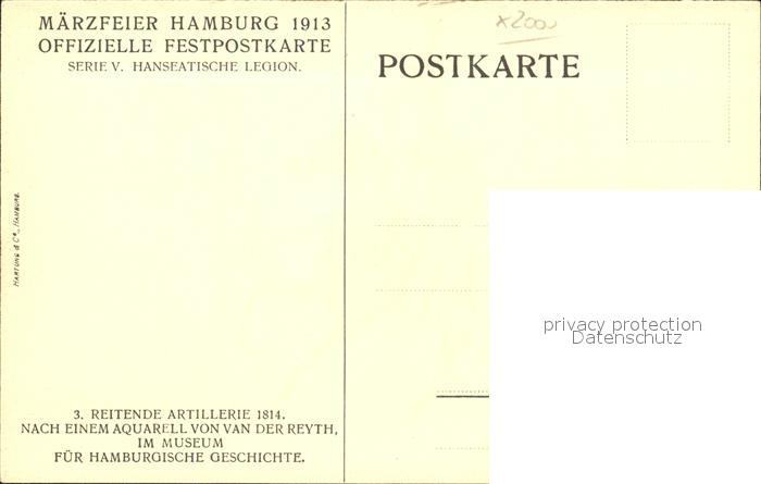42053582 HAMBURG CITY Maerzfeier 3. Reitende Artillerie Aquarell postalisch nicht gelaufen Feldpost Erhaltung siehe scans KatCode: 11110002000000