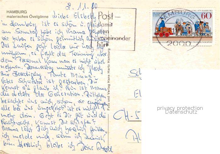 72713326 alte Postkarte HAMBURG CITY Malerisches oevelgoenne postalisch gelaufen Erhaltung siehe scans [FriedD77] KatCode: 11110002000000