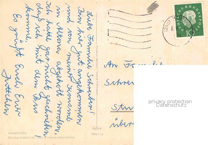 72867327 alte Postkarte HAMBURG CITY Michaeliskirche Bismarkdenkmal postalisch gelaufen Erhaltung siehe scans [NatalD47] KatCode: 11110002000000