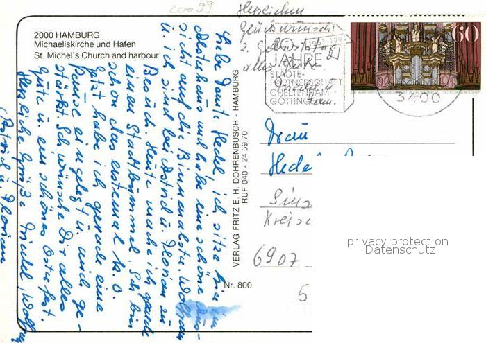 72798868 alte Postkarte HAMBURG CITY Michaeliskirche Der Michel Wahrzeichen Hafen Fliegeraufnahme postalisch gelaufen Erhaltung siehe scans [FriedD77] KatCode: 11110002000000