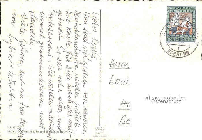 72353872 alte Postkarte HAMBURG CITY Michel Ost West Str Blick zum HafenFliegeraufnahme postalisch gelaufen Erhaltung siehe scans KatCode: 11110002000000