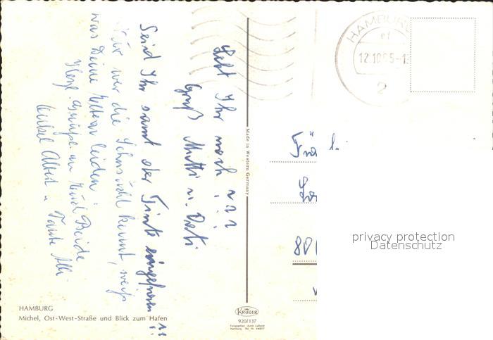 72049480 alte Postkarte HAMBURG CITY Michel Ost West Strasse Hafen postalisch gelaufen Erhaltung siehe scans KatCode: 11110002000000