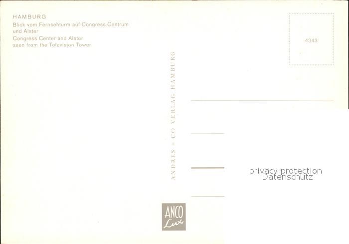 72170372 HAMBURG CITY mit Fernsehturm und Congress Centrum und Alster postalisch nicht gelaufen Erhaltung siehe scans KatCode: 11110002000000