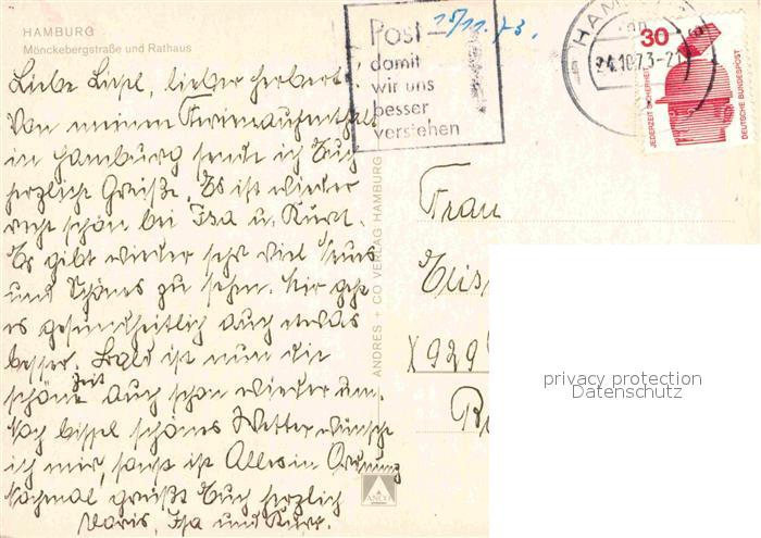 72911950 alte Postkarte HAMBURG CITY Moenckbergstrasse Rathaus postalisch gelaufen Erhaltung siehe scans [NatalD47] KatCode: 11110002000000