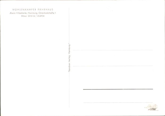 41290844 HAMBURG CITY Muehlenkamper Faehrhaus postalisch nicht gelaufen gute Erhaltung Alte Ansichtskarte Postkarte hz_L Katcode 11110002000000