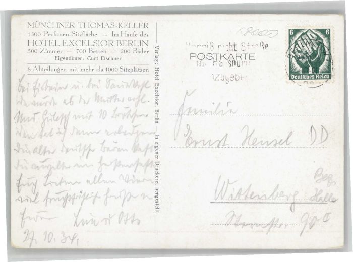 40742705 HAMBURG CITY Muenchen Thomas-Keller postalisch gelaufen Alte Ansichtskarte Postkarte alte Postkarte Katcode 11110002000000