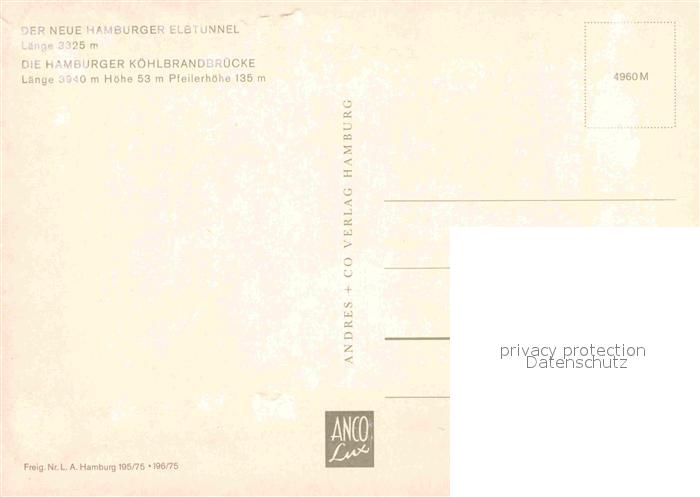 72889269 HAMBURG CITY Neuer Elbtunnel Koehlbrandbruecke Fliegeraufnahme postalisch nicht gelaufen Erhaltung siehe scans [WerneD78] KatCode: 11110002000000