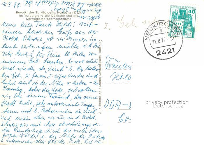 72630732 alte Postkarte HAMBURG CITY Norwegische Seemannskirche St. Michaelis Michel postalisch gelaufen Erhaltung siehe scans [LiesaD40] KatCode: 11110002000000