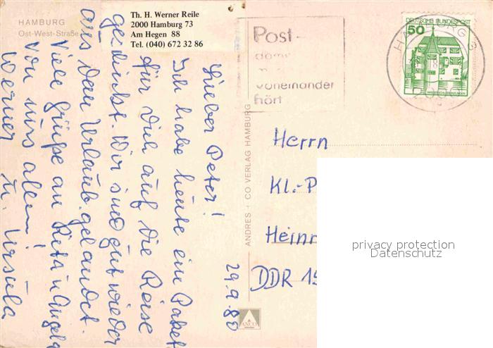 72848851 alte Postkarte HAMBURG CITY Ost West Strasse postalisch gelaufen Erhaltung siehe scans [FriedD77] KatCode: 11110002000000