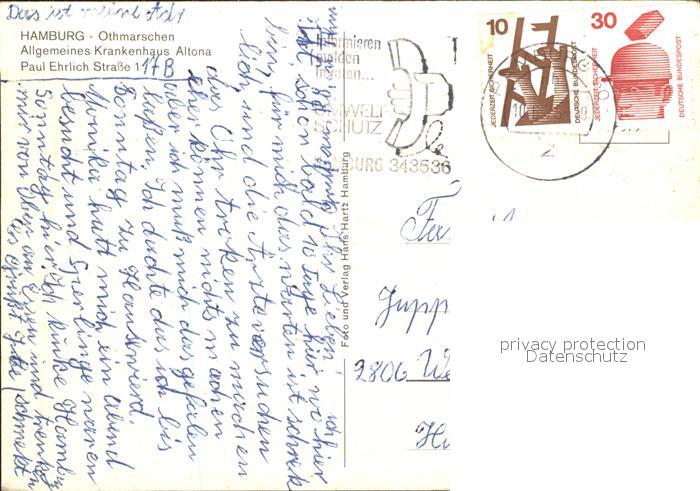 71945552 alte Postkarte HAMBURG CITY Othmarschen Krankenhaus Altona postalisch gelaufen Erhaltung siehe scans KatCode: 11110002000000