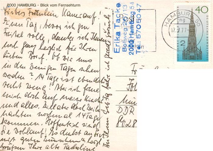 73903803 HAMBURG CITY Panorama Blick vom Fernsehturm postalisch gelaufen Erhaltung siehe scans [FriedD77] alte Postkarte Frie Katcode 11110002000000