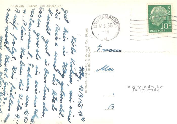 73755780 HAMBURG CITY Panorama mit Binnen und Aussenalster postalisch gelaufen Erhaltung siehe scans [FriedD77] alte Postkarte Frie Katcode 11110002000000