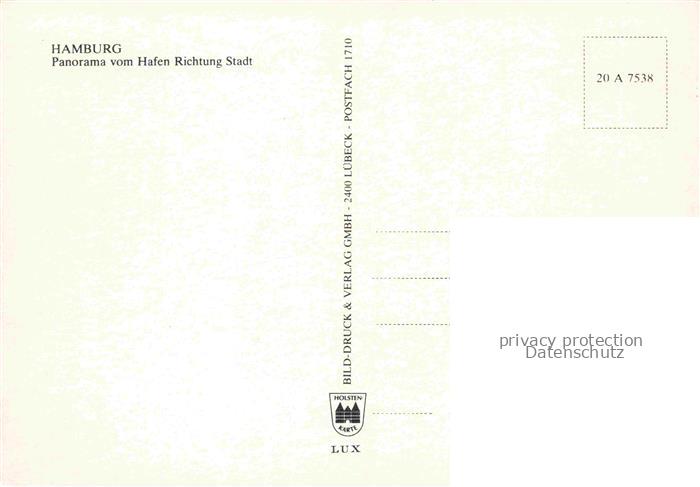 74037691 HAMBURG CITY Panorama vom Hafen Richtung Stadt postalisch nicht gelaufen Fliegeraufnahme Erhaltung siehe scans [FriedD77] Fliegeraufnahme Frie Katcode 11110002000000