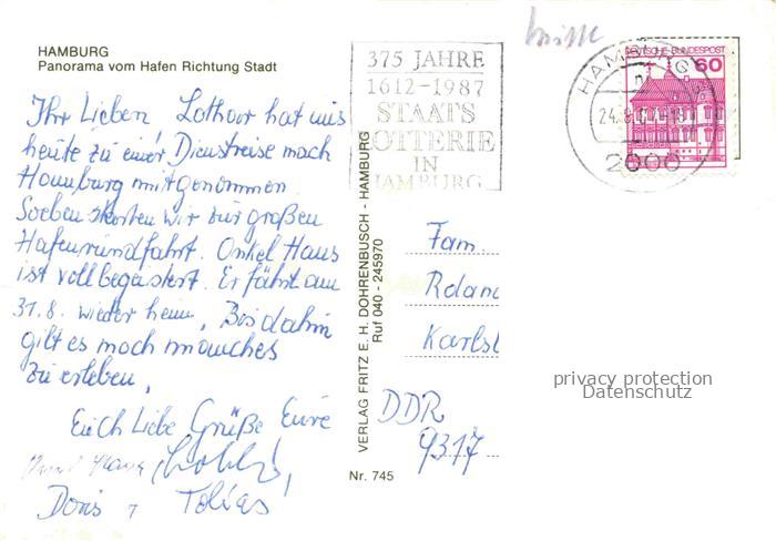 74043998 HAMBURG CITY Panorama vom Hafen postalisch gelaufen Erhaltung siehe scans [WerneD78] alte Postkarte Wern Katcode 11110002000000
