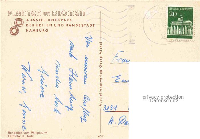 74090962 HAMBURG CITY Planten un Blomen Ausstellungspark Fliegeraufnahme postalisch gelaufen Erhaltung siehe scans [WerneD78] alte Postkarte Wern Katcode 11110002000000