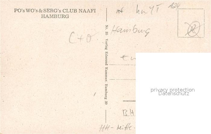 43108503 HAMBURG CITY Po’s Wo’s and Serg’s Club Naafi Bunte Kuh Restaurant postalisch nicht gelaufen Erhaltung siehe scans [FriedD77] Frie Katcode 11110002000000