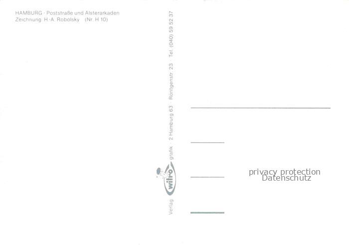 74021353 HAMBURG CITY Poststrasse und Alsterarkaden Zeichnung H. A. Robolsky Kuenstlerkarte postalisch nicht gelaufen Erhaltung siehe scans [FriedD77] Frie Katcode 11110002000000