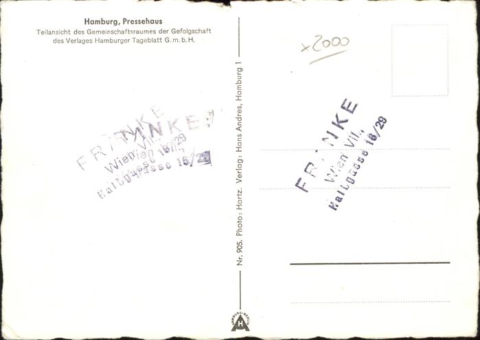 41207448 HAMBURG CITY Pressehaus postalisch nicht gelaufen gute Erhaltung Alte Ansichtskarte Postkarte hz_C Katcode 11110002000000