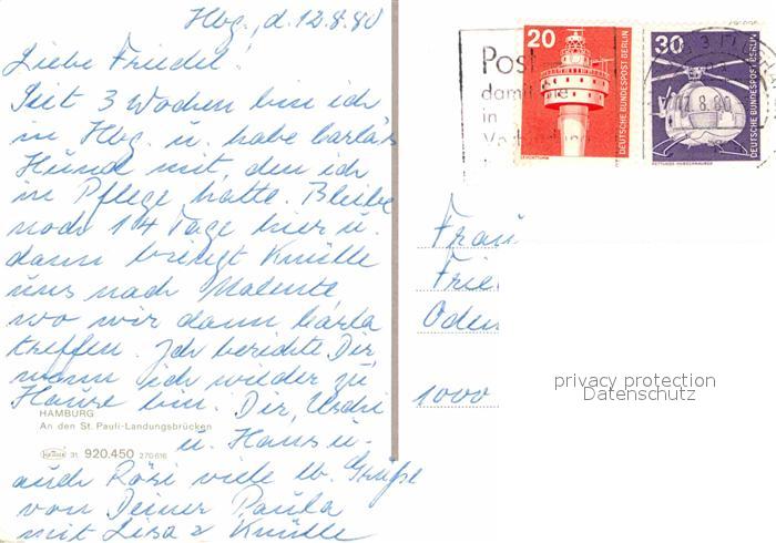 72662824 alte Postkarte HAMBURG CITY Promenade St Pauli Landungsbruecken postalisch gelaufen Erhaltung siehe scans [FriedD77] KatCode: 11110002000000