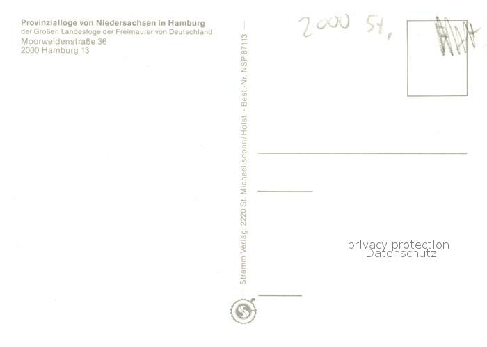 73713795 HAMBURG CITY Provinzialloge von Niedersachsen Landesloge der Freimaurer von Deutschland postalisch nicht gelaufen Erhaltung siehe scans [FriedD77] Frie Katcode 11110002000000