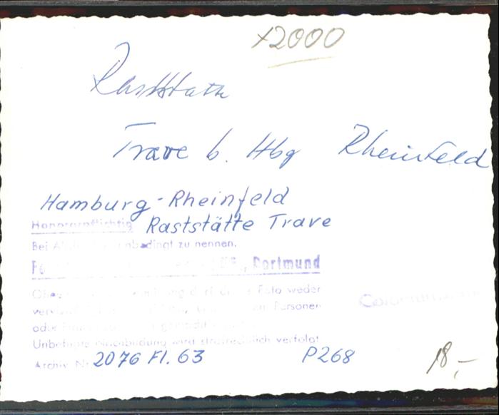 41055441 HAMBURG CITY Raststaette Trave postalisch nicht gelaufen Foto (keine Postkarte) Ulri Katcode 11110002000000