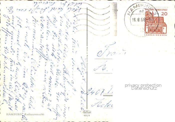 72305053 alte Postkarte HAMBURG CITY Rathaus Markt Fliegeraufnahme postalisch gelaufen Erhaltung siehe scans KatCode: 11110002000000
