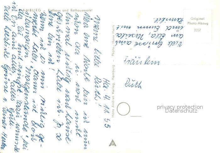 72894593 HAMBURG CITY Rathaus Rathausmarkt postalisch nicht gelaufen Erhaltung siehe scans [KathaD81] KatCode: 11110002000000