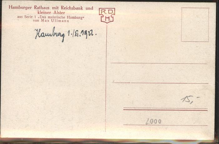 41054630 HAMBURG CITY Rathaus Reichsbank Kuenstler Max Ullmann postalisch nicht gelaufen Alte Ansichtskarte Postkarte Elvi Katcode 11110002000000