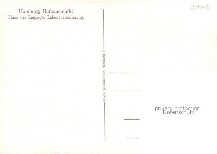 43367655 HAMBURG CITY Rathausmarkt Haus der Leipziger Lebensversicherung postalisch nicht gelaufen Erhaltung siehe scans [FriedD77] Frie Katcode 11110002000000