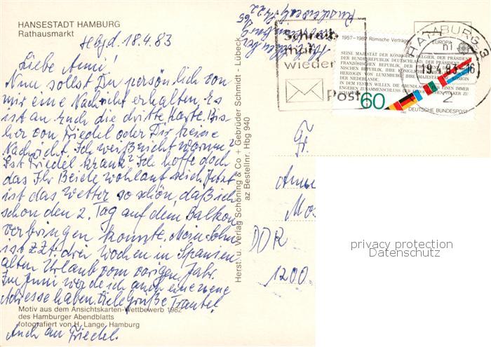 73859464 HAMBURG CITY Rathausmarkt Strassenmusiker postalisch gelaufen Erhaltung siehe scans [FriedD77] alte Postkarte Frie Katcode 11110002000000