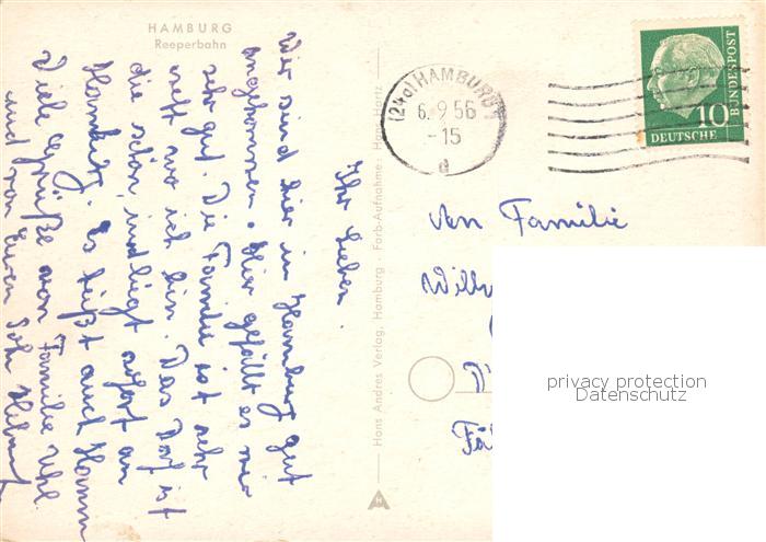 73813550 HAMBURG CITY Reeperbahn postalisch gelaufen Erhaltung siehe scans [WerneD78] alte Postkarte Wern Katcode 11110002000000